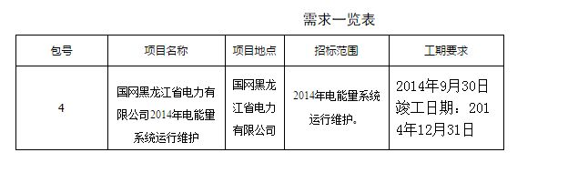 国网黑龙江省电力有限公司2014年电能量系统运行维护招标公告