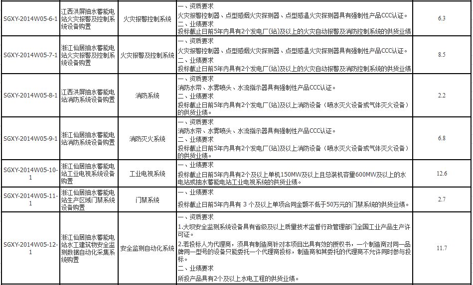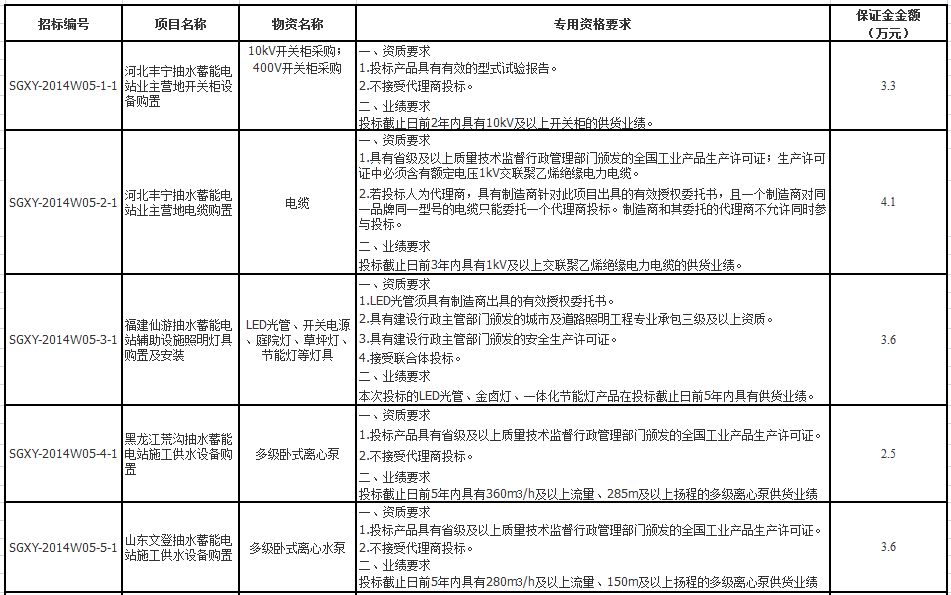 国网新源控股有限公司2014年第五批物资招标采购项目