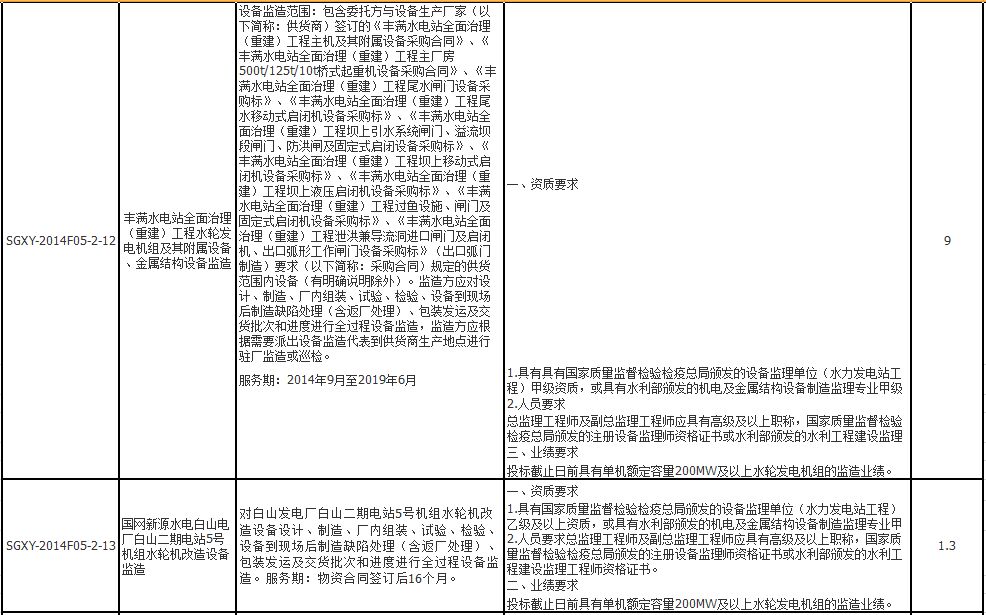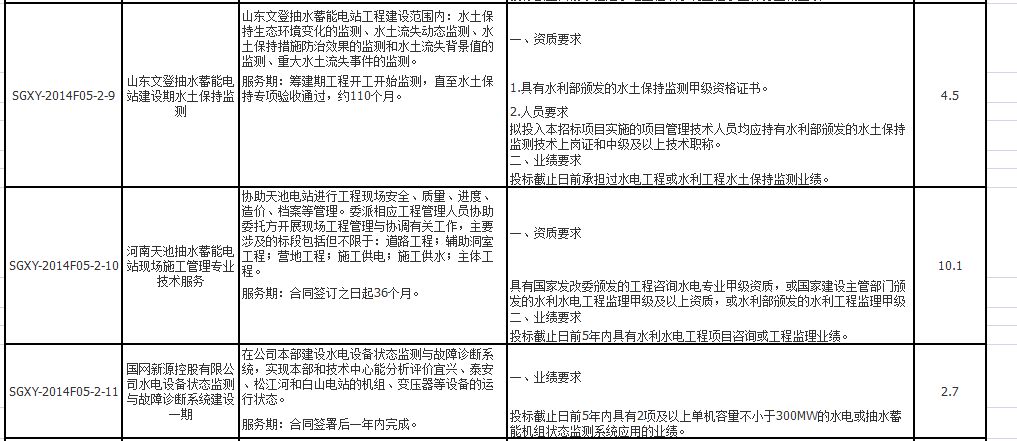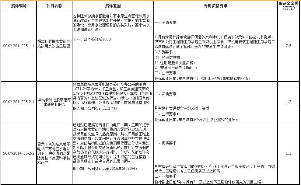 国网新源控股有限公司2014年第五批服务类项目招标采购
