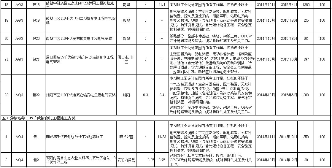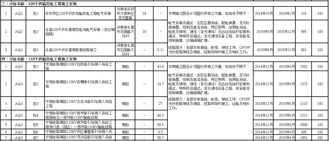 4. 工程业绩电压等级序列:1000(直流±1100、直流±800)千伏、750(直流±660)千伏、500(直流±500、直流±400)千伏、330(220、直流±320)千伏、110(66)千伏、35千伏、10千伏等。