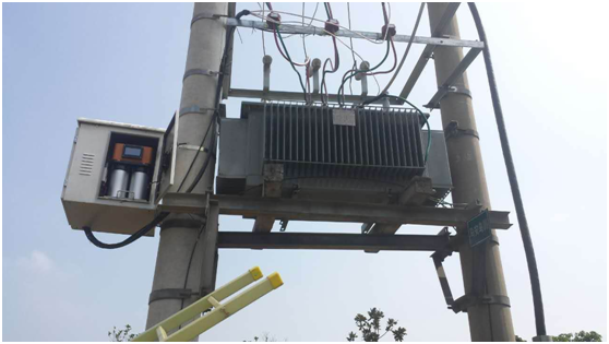 该装置可以安装在配变台区架上、背挂在杆子上,如图3。
